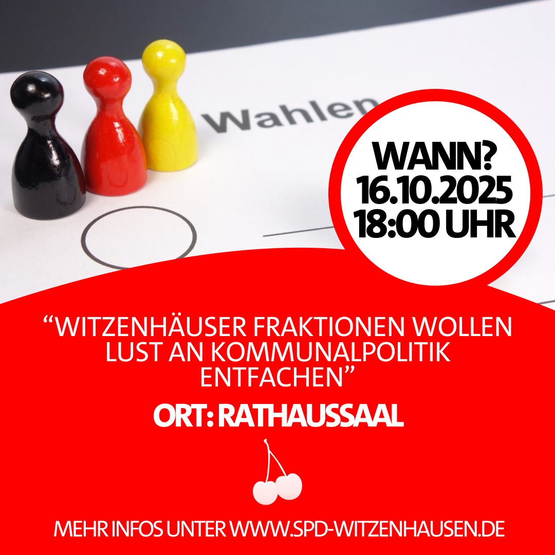Möchten Sie sich in der Kommunalpolitik engagieren, aber wissen nicht, wie? Dann haben wir genau das Richtige für Sie! Die SPD Witzenhausen und die anderen im Stadtparlament vertretenen Fraktionen laden Sie herzlich zu einer gemeinsamen Informationsveranstaltung ein.