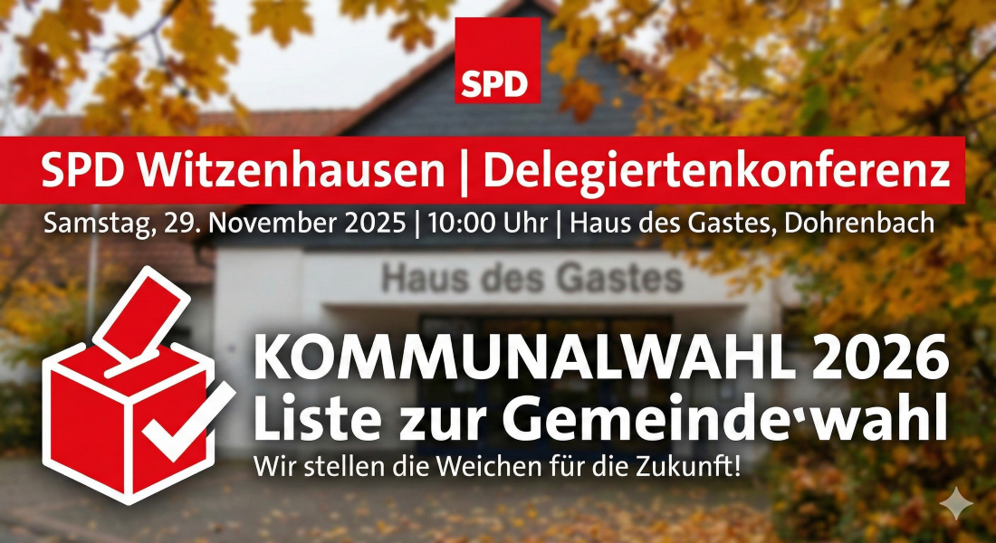 Witzenhausen-Dohrenbach. Der SPD Ortsverband Witzenhausen bereitet sich auf das kommende Wahljahr vor. Am Samstag, den 29. November 2025, kommen die Sozialdemokraten zu einer wichtigen Delegiertenkonferenz zusammen, um ihre Kandidatinnen und Kandidaten für die Gemeindewahl in Stellung zu bringen.